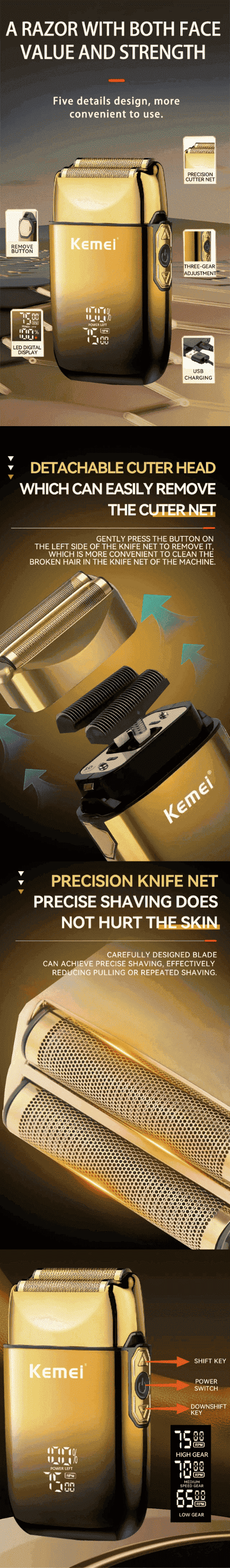 ماكينة الحلاقة الذهبية Kemei KM-TX10 – الأناقة والقوة بين يديك