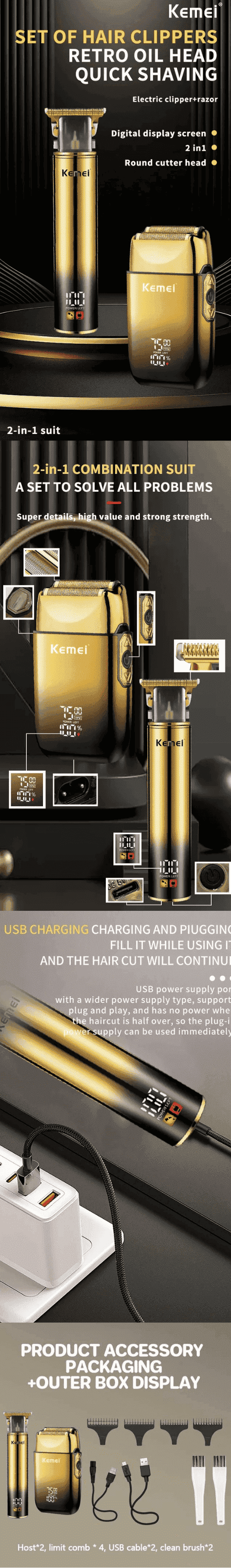 ماكينة حلاقة الشعر الكهربائية KM-2131 مع ماكينة تشذيب | مجموعة حلاقة 2 في 1 للرجال – شاشة LCD وشحن USB